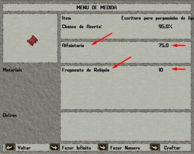 | Pergaminhos de Nível Inferior | + 1 Pergaminho de Ligação | Resultado: |