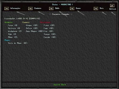 - Conforme a imagem abaixo, é possivel navegar entre as opçoes e verificar todos os bonus aplicados em armas e armaduras do personagem.